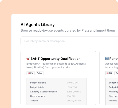 Create custom agent to extract, structure, and leverage exactly the information you need from your business conversations.